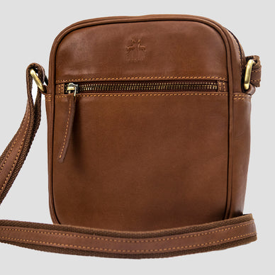Bolso de piel de caballero con bandolera regulable. Cuenta con un departamento principal con apartado para móvil y bolsillo con cremallera, para tener todas las tus pertenecías en orden. En cuanto a su exterior cuenta con un bolsillo frontal y otro trasero, ambos cerrados con cremallera, para mayor seguridad. Es una pieza básico y sencilla, pero su sencillez llamará tu atención.