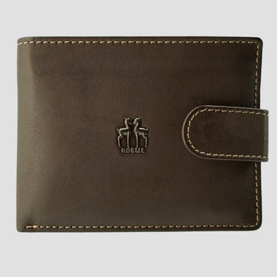 Cartera billetera de hombre en color marrón oscuro, de formato americano, marca Rosme, fabricada en piel vacuno.