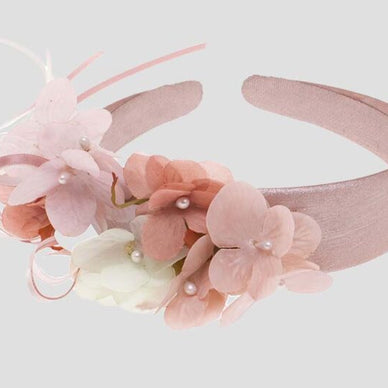 Diadema fabricada de forma artesanal, con flores de tela en el centro de perla y bellas cintas de raso y organza. Ideal para niñas de comunión y arras.Esta diadema es ideal para niñas de comunión o damitas.Medida: 25 cm x 6 cm.¡Un modelo irresistible con un diseño extremadamente romántico!