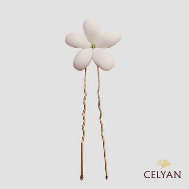Preciosa horquilla hecha 100 % a mano en porcelana rusa, para pelo. Esta pieza representa el jazmín tan típico en nuestra tierra Málaga. Está realizado en exclusiva para nuestra tienda Celyan.