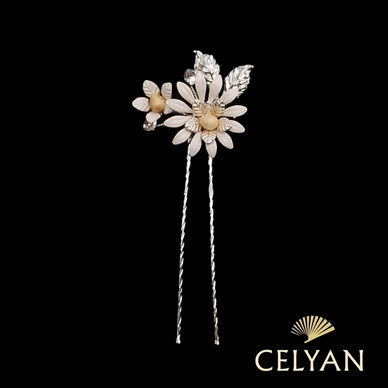 Precioso detalle para el pelo, muy ligero y poco cargado, con diseño en forma de flor de margarita en color plata y blanco.