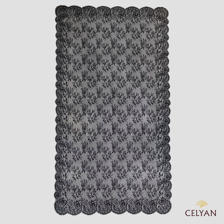 Sus adornos florales imitan a los claveles, sus puntas son muy marcadas. Es nuestra mantilla más tradicional, de las mantillas más usadas en Semana Santa por su dibujo y diseño.