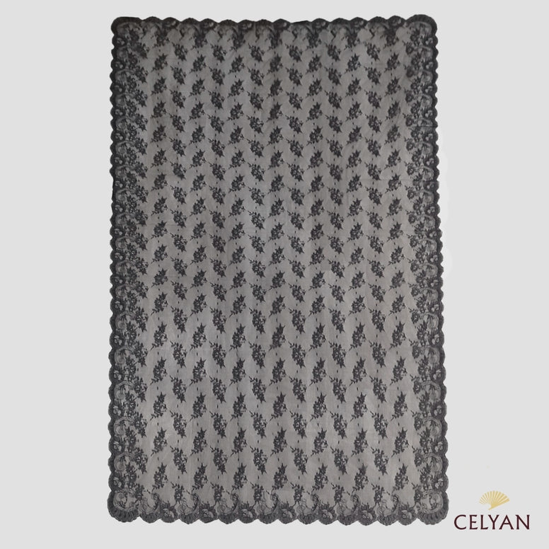 Mantilla de fabricación 100% española, de color negra con encaje de diseño floral.