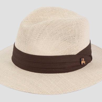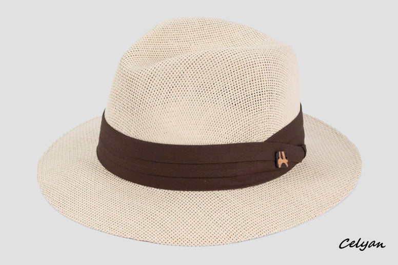 Este sombrero está confeccionado en color natural con una preciosa cinta de color marrón, que le da un aspecto muy veraniego y fresco. La copa es elegante imitando a los sombreros clásicos.