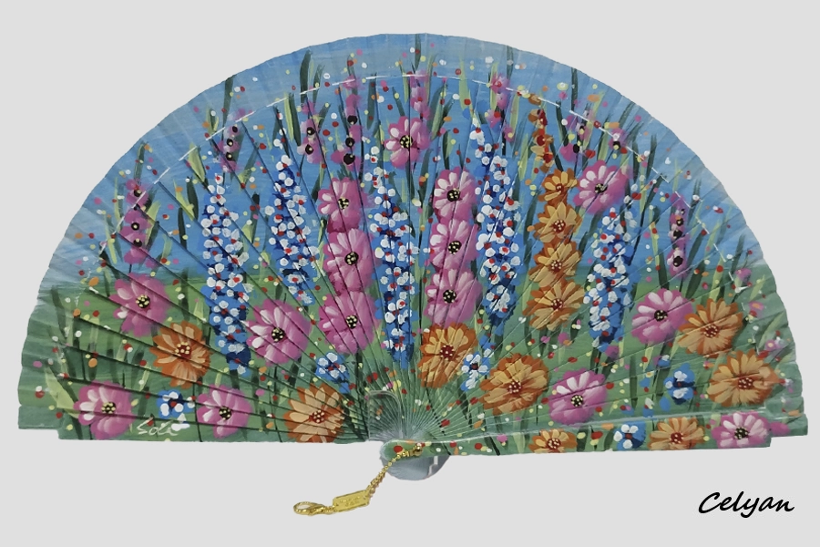 Abanico Flores Colores A 54156, pintado a mano.