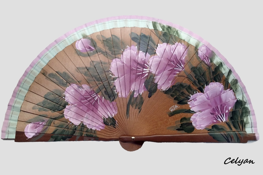 Abanico Flores Rosas R 571, de madera pintado a mano.